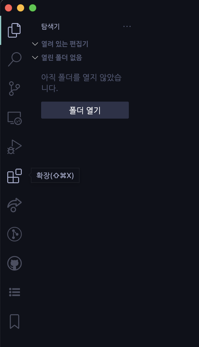 설치가 되면 왼쪽 메뉴에서 Extentions(확장기능)를 클릭하여 필요한 플러그인들을 설치합니다.