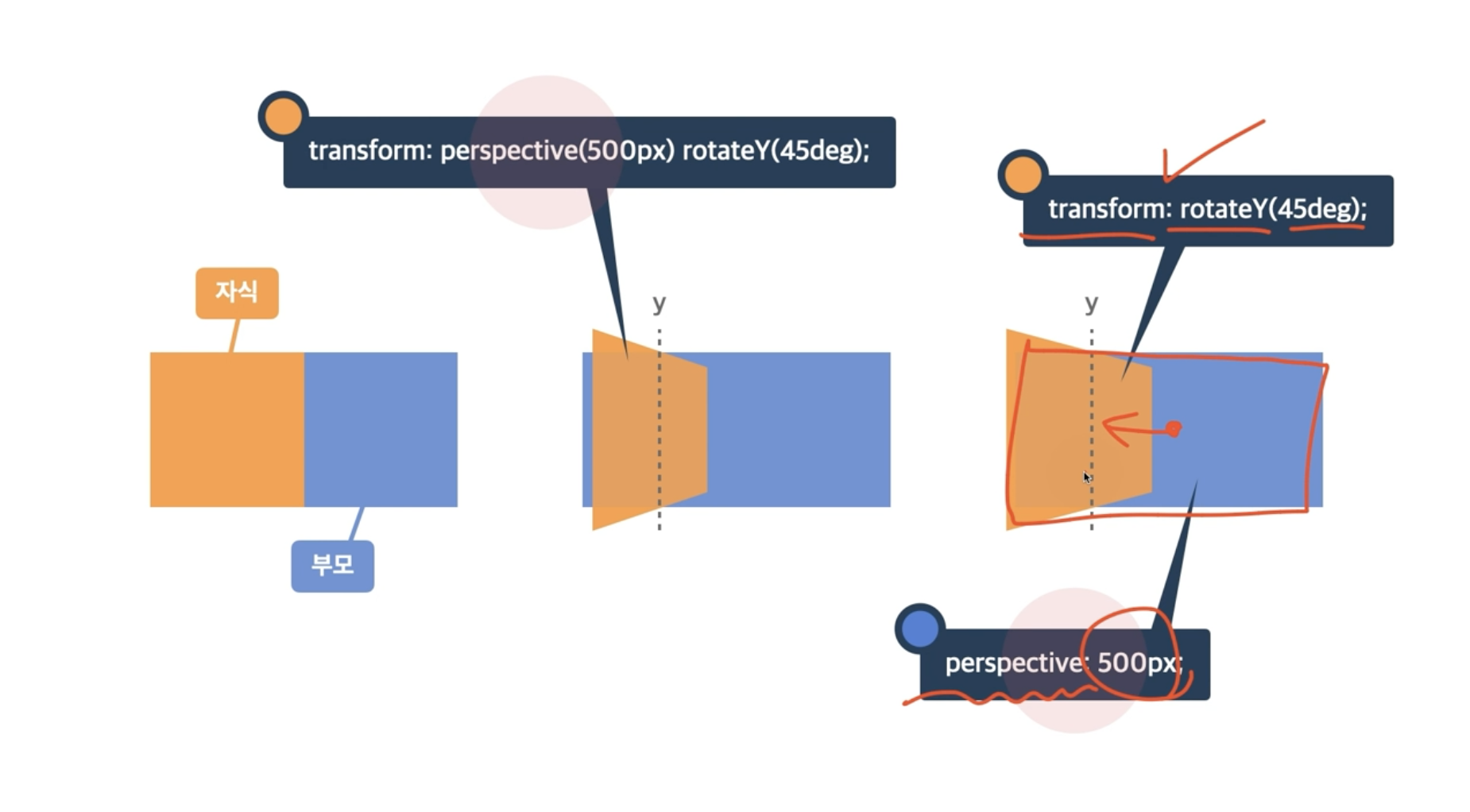 패스트캠퍼스 perspective 속성과 함수에 대한 설명 스크린샷(함수과 속성에 따라 기준점이 달라진다)