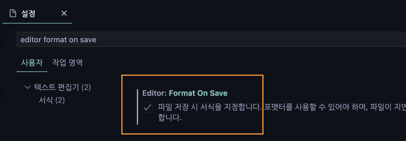 1. vs code 설정에서 기본 포맷을 prettier로 지정해 준다. 기본은 null로 되어있다.