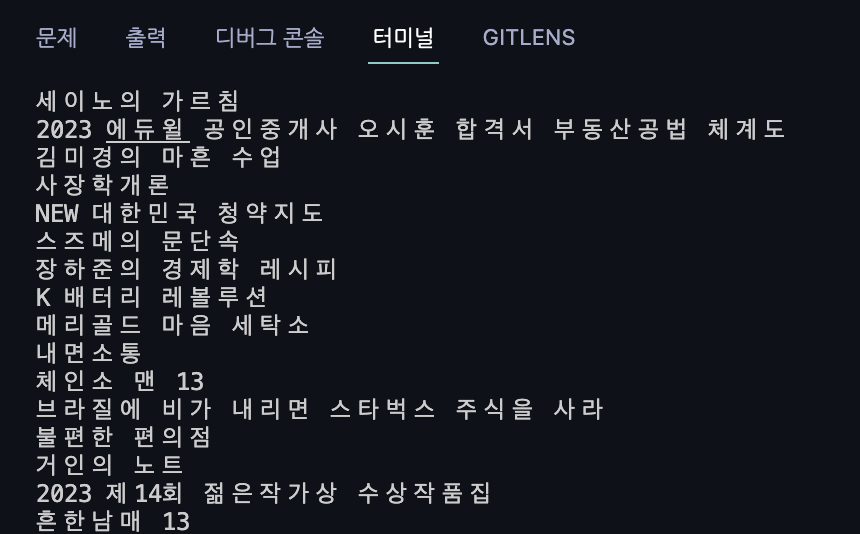 그럼 아래와 같이 책 제목 내용이 잘 출력된다.
