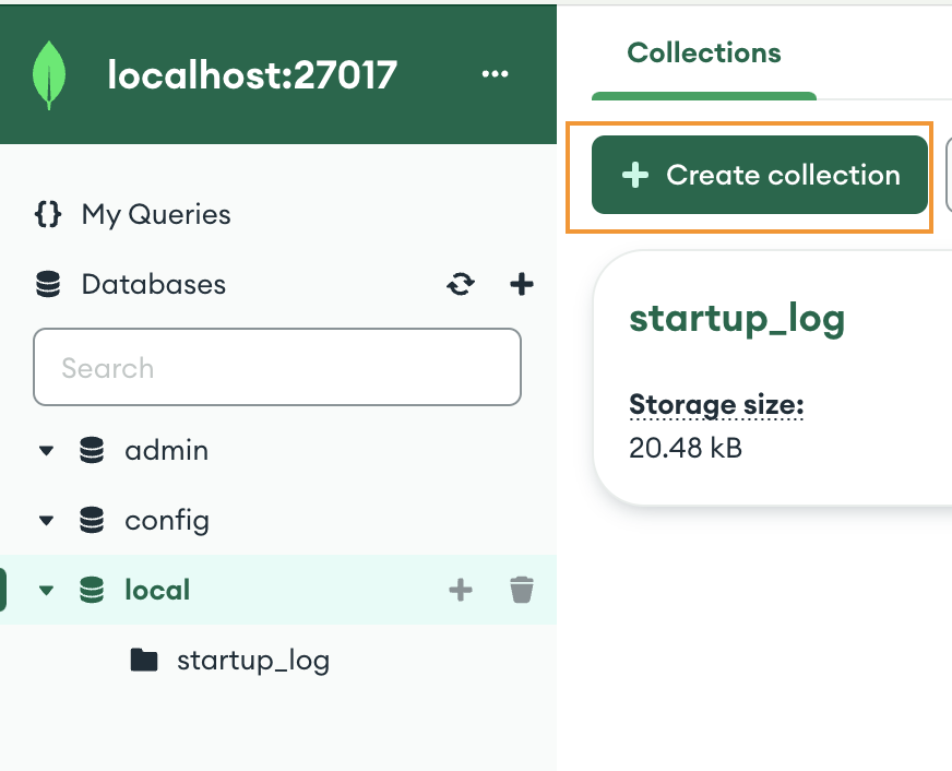 먼저 테스트로, local의 collection인 startup_log에 있는 내용을 조회해 본다.