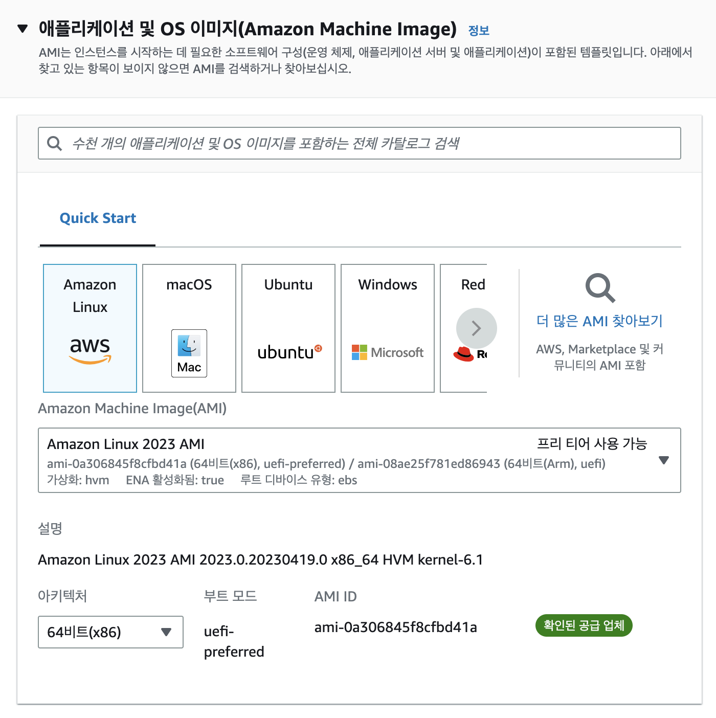 - 인스턴스 시작은 컴퓨터를 하나 만드는 것이다. 여기다 운영체제를 설치, 성능 선택 등 할 수 있다.